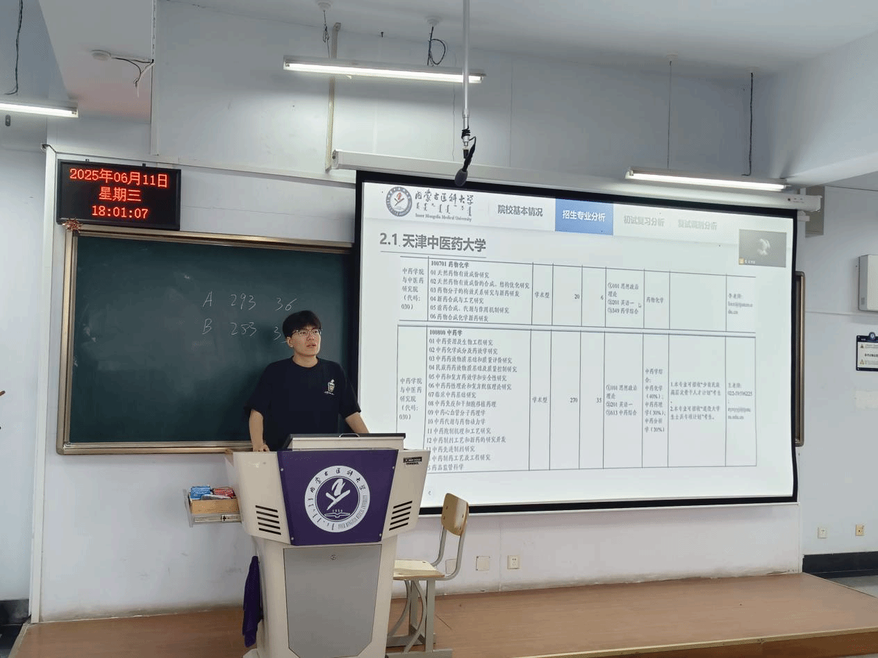 为深入贯彻落实党中央关于稳就业、促发展的决策部署,进一步为2026届毕业生提供就业指导,6月11日,药学院于授业堂203举办就业、考研经验分享会,活动邀请了学院2025届就业、考研的8名毕业生进行分享。本次活动由教工第三党支部、学生工作办公室联合主办,2026届全体毕业生、辅导员、教工第三党支部全体党员参加了本次活动。