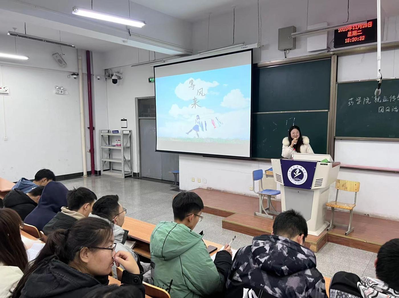 2014级药学专业张跃祥,现为药学院挂职辅导员、药物分析教研室教师,结合自身在内蒙古大唐药业以及学校的工作经历,为同学们详细介绍了各专业的培养目标和就业方向。张跃祥勉励同学们要认清就业形势,明确就业目标,坚定就业信心,努力拓宽就业渠道,增加就业成功率。