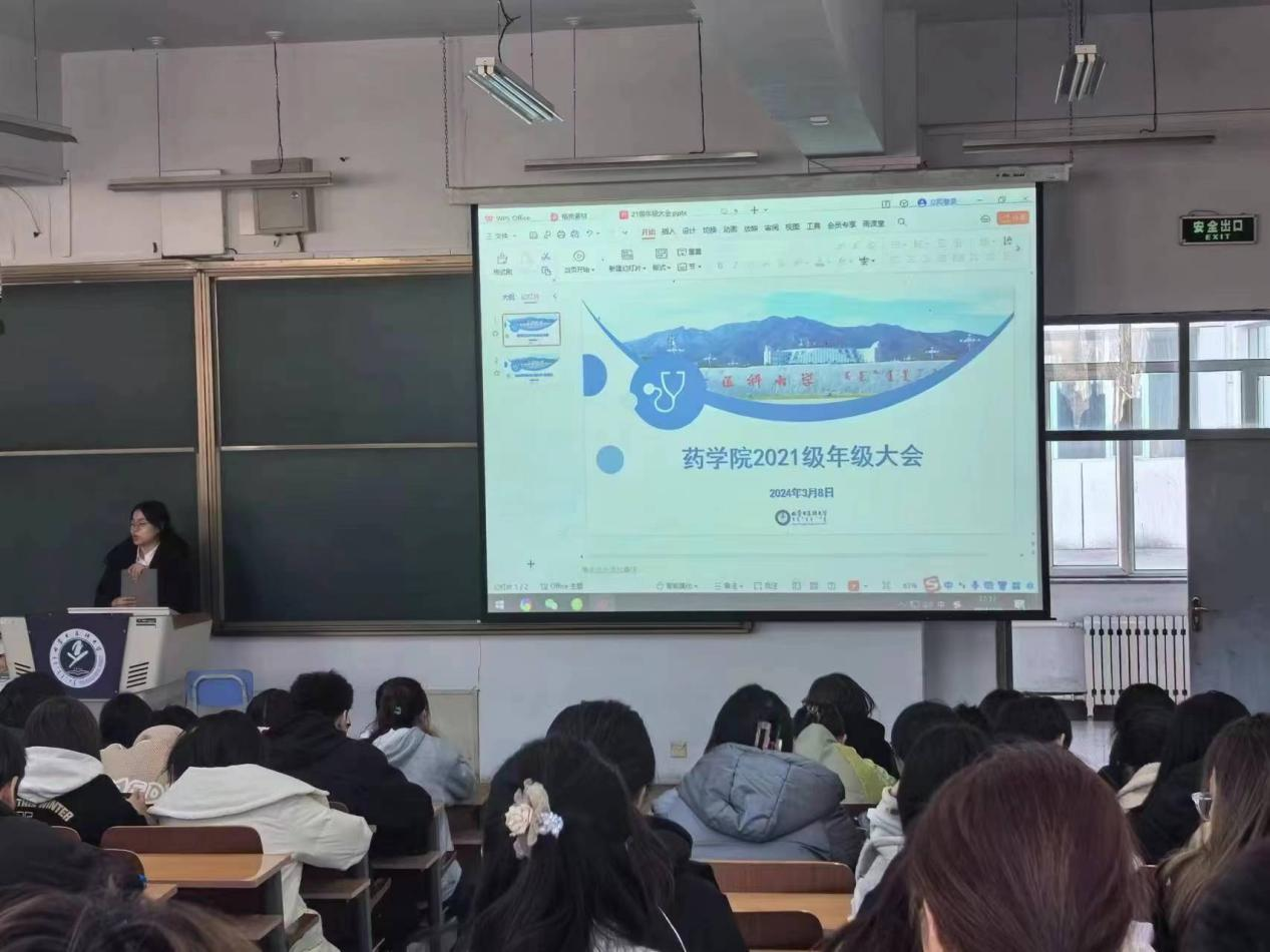 为进一步提升学生安全意识、纪律意识,帮助学生做好新学期规划,药学院各年级于3月8日召开年级大会,会议由各年级辅导员主持。