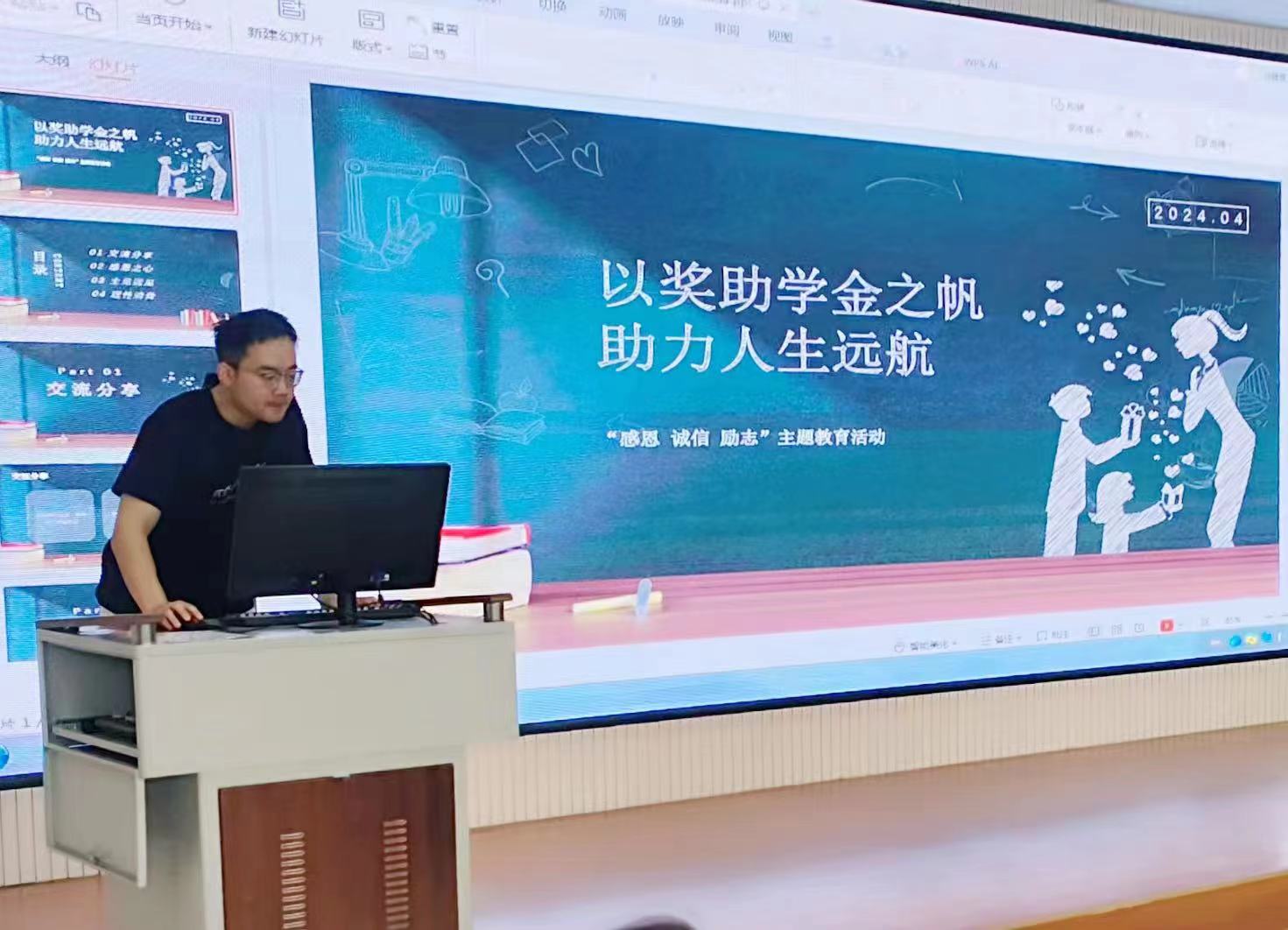 4月17日,药学院“感恩励志诚信”主题教育活动于金山校区大学生创客中心举办,由6名荣获国家、自治区级奖学金的学生担任主讲人,2023级70余名学生参加本次活动,活动由药学院辅导员赵瑞佳主持。