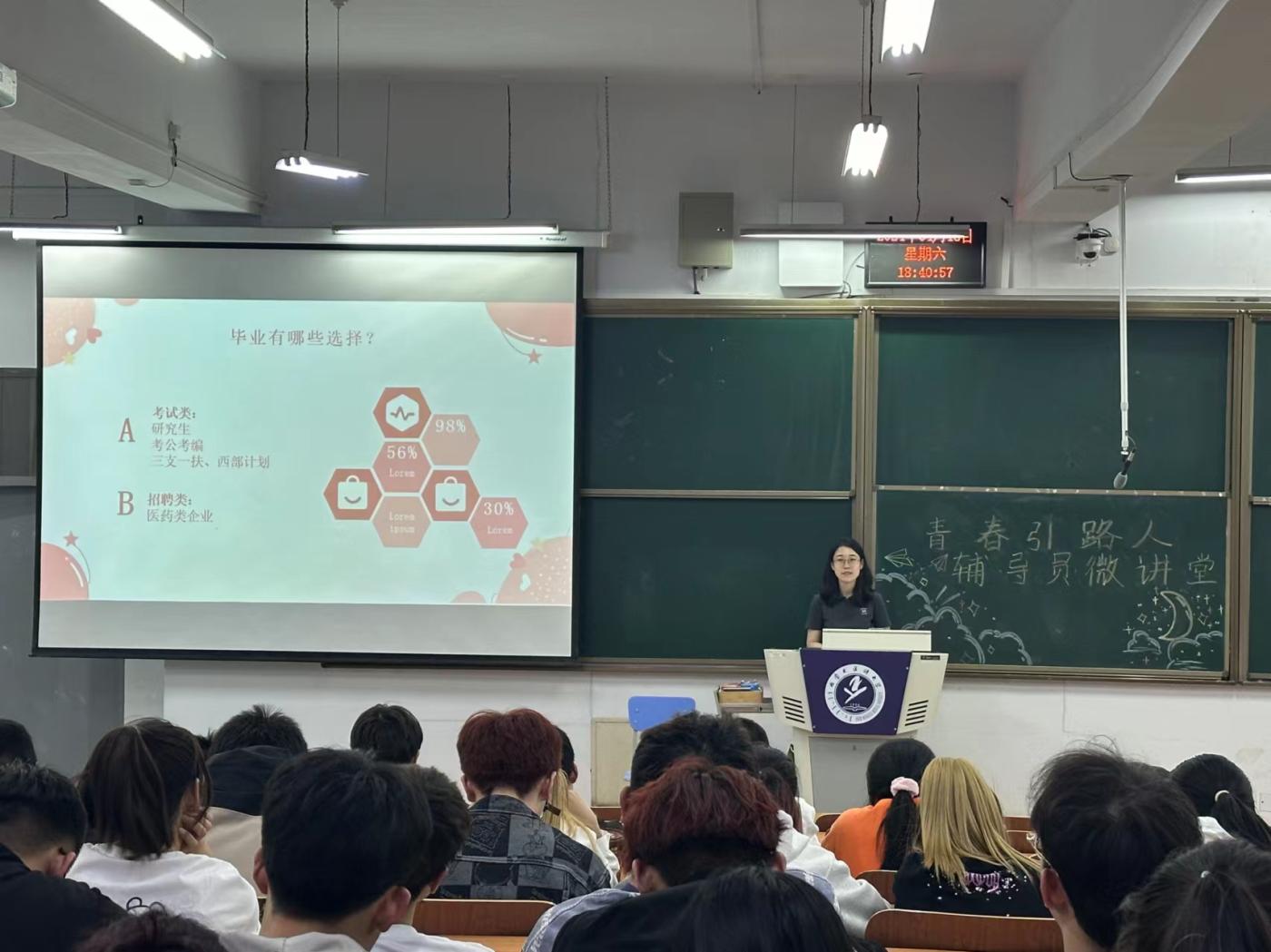 为深入学习贯彻习近平新时代中国特色社会主义思想和党的二十大精神,进一步落实立德树人根本任务,药学院“立心铸魂”辅导员工作室根据专兼职辅导员的所学专业和业务素养优势,举办“青春引路人 辅导员微讲堂”系列讲座活动,4月共举办讲座两场,参与人次达500余人。