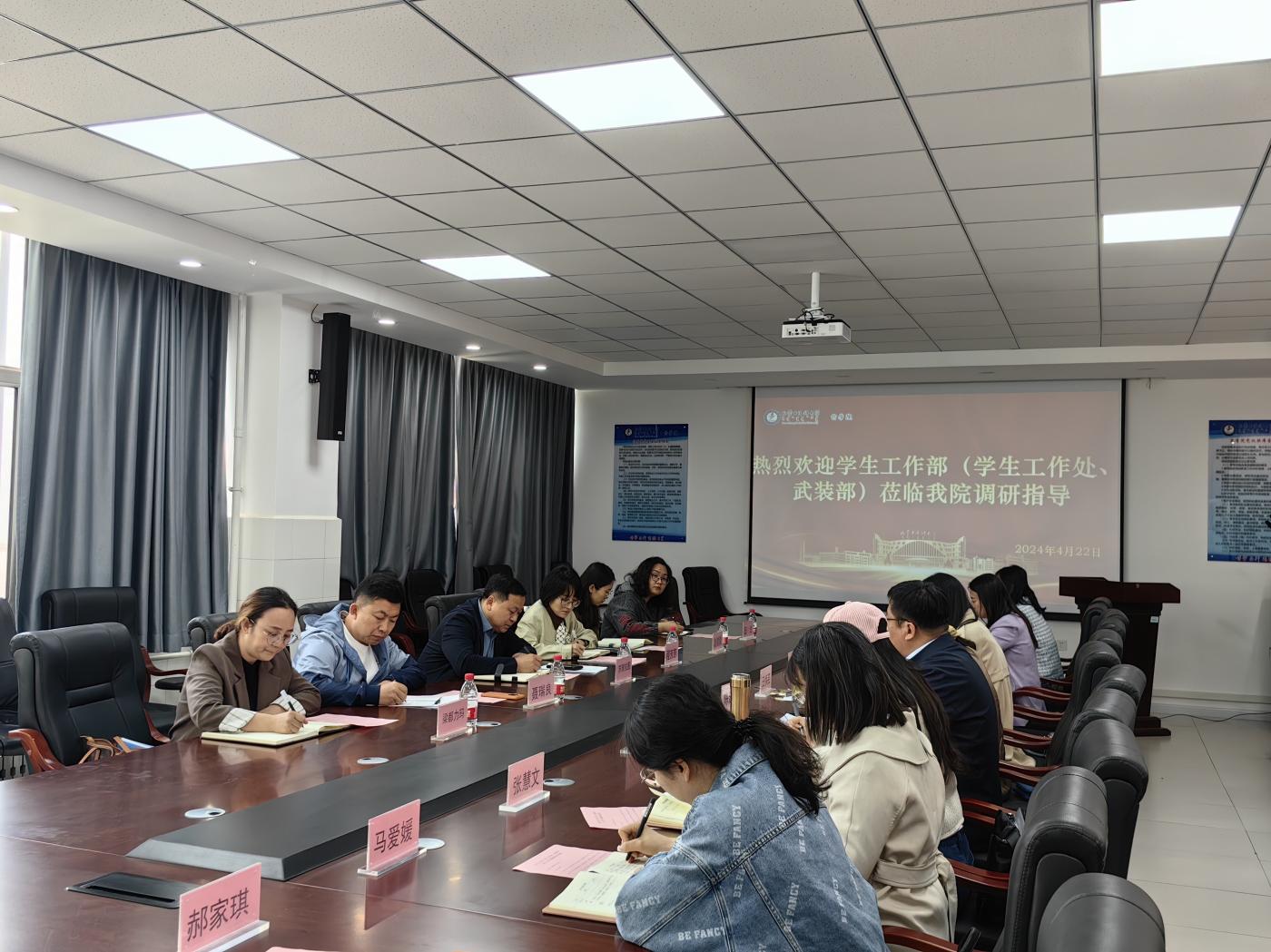 4月22日,学生工作部(学生工作处、武装部)部(处)长、临床医学学生工作部党委书记苏雅拉图一行莅临我院进行调研,院长王焕芸,党委副书记、副院长陈建平,学生工作部(学生工作处、武装部)相关人员,药学院全体辅导员,班主任代表参加了会议。