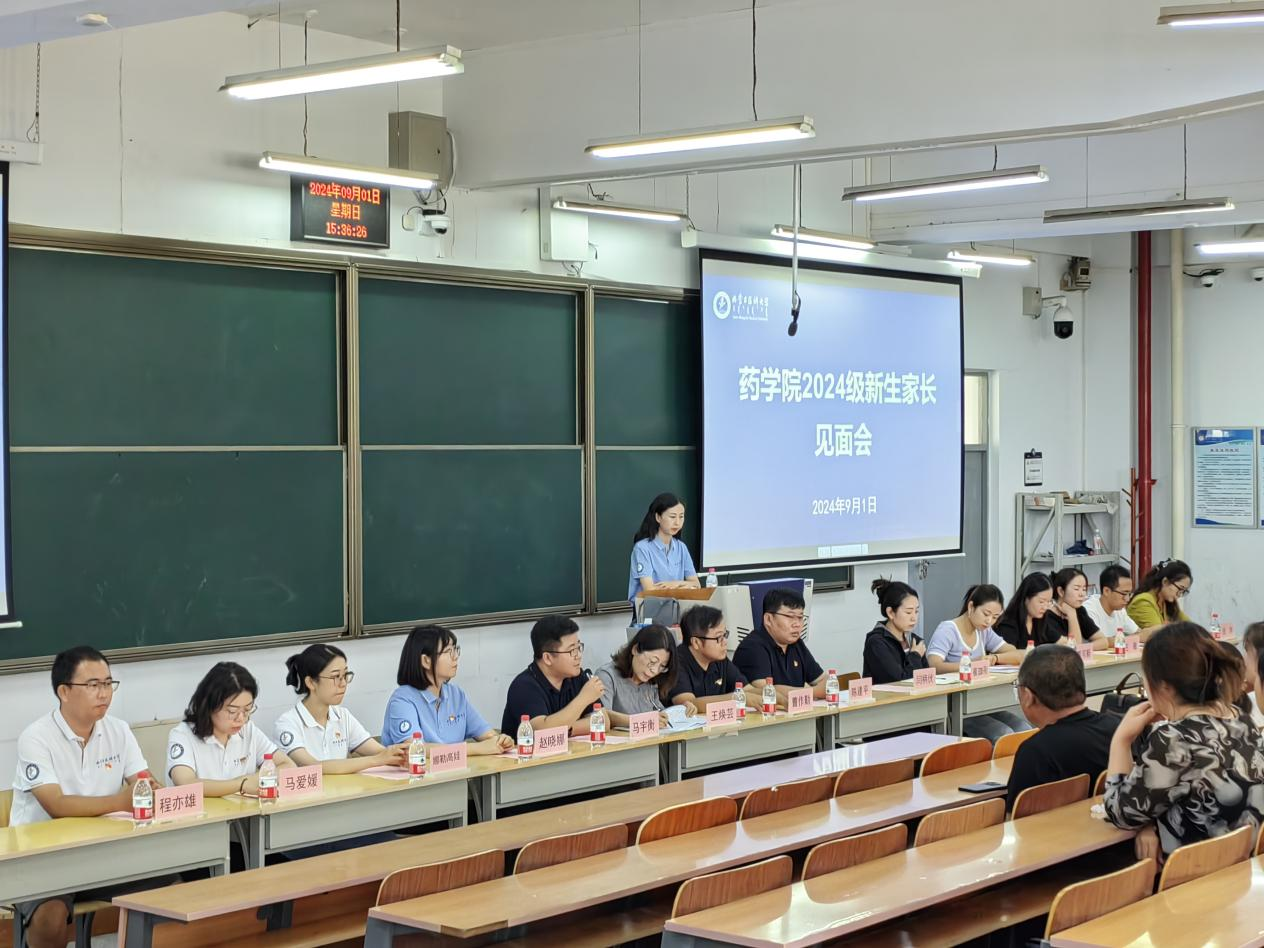 9月1日,药学院于北楼101召开2024级新生家长见面会,药学院党委书记曹作勤,院长王焕芸,副书记、副院长陈建平,副院长马宇衡,学生工作办公室(团总支)副主任、副书记闫柄伏、赵晓娜,2024级新生班主任,辅导员以及新生家长参加了本次见面会,见面会由闫柄伏主持。