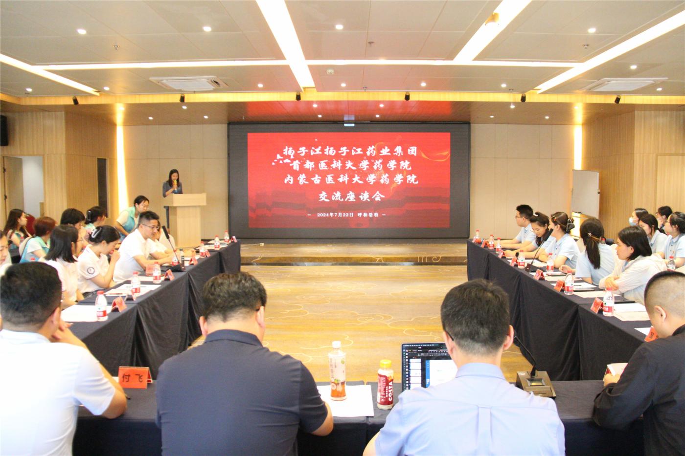 7月22日下午,在我院党政领导带队下,社会实践团队前往内蒙古大唐药业股份有限公司进行座谈、实地参观。座谈会由我院副院长马宇衡主持。座谈会上,内蒙古大唐药业股份有限公司负责人对两院师生的到来表示热烈欢迎并向与会人员介绍了企业情况。陈建平介绍了目前我院实践教学基地基本情况、存在的不足以及建设举措。王玉记就首都医科大学药学院实践教学基地建设基本情况进行介绍。曹作勤做总结发言,指出本次座谈是深化校企合作、加强供需对接、探索协同育人、共谋产教融合的一次重要互动,对深化产教融合,创新校企协同育人培养模式,拓宽学生实习和就业渠道起到了积极作用。座谈会后,在工作人员的带领下师生进行了实地参观。同日,师生与扬子江药业集团有限公司进行座谈交流。座谈会上,企业负责人介绍了企业情况、新晋员工发展与待遇情况。王玉记做题为《发展新质生产力——药品研发的思考》的讲座。本次座谈搭建了校企合作桥梁,进一步拓展了学生就业渠道,推动校企共同探索人才培养新模式。