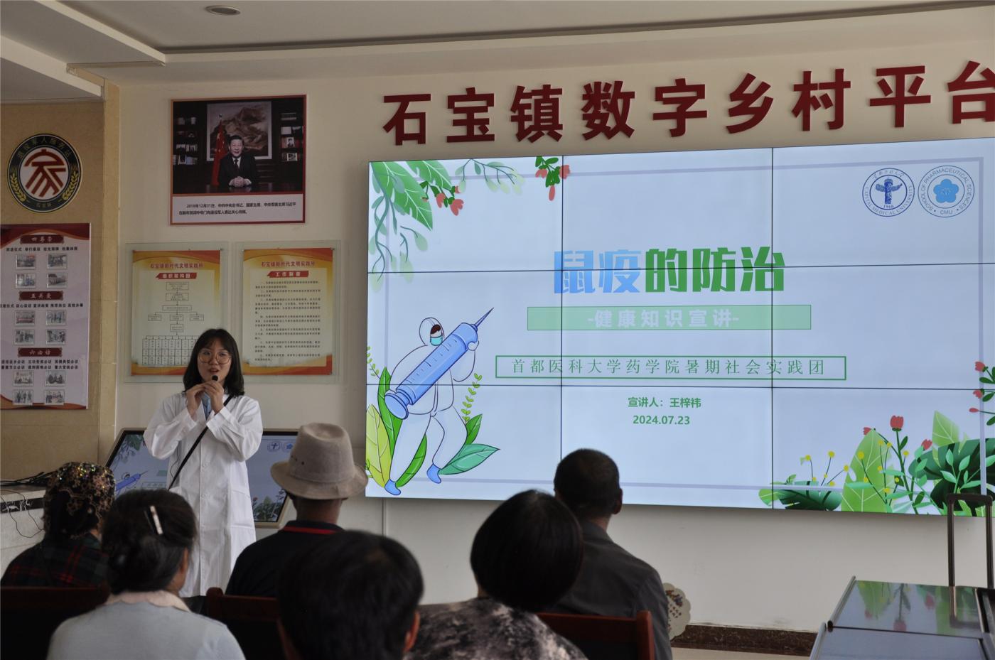 活动中,社会实践队成员就鼠疫的防治做健康知识宣讲讲座,向村民讲解鼠疫的主要传染源和传播途径、感染鼠疫后的临床表现、鼠疫的“三不三报”、疫源地内的居民如何防护等。