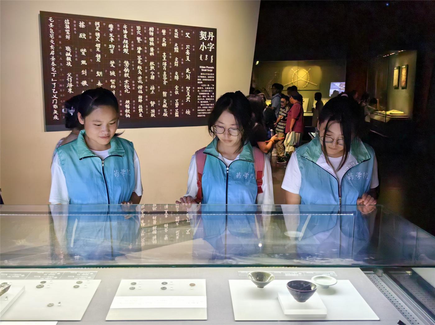 7月21日在讲解员的带领下,师生依次参观了内蒙古博物院“边关岁月”“大辽契丹”展厅,重温了历史上我国北方边疆地区的重要地位和作用,以及各民族在抵御外侮、保卫家园中结成的深厚情谊和共同抗争的历史篇章。同时通过珍贵的文物和详实的史料,社会实践队深入了解了契丹民族的历史渊源、政治制度、社会风俗和文化艺术,感受到了古代中华民族多元文化的交融与共存,进一步更加增强了文化自信和文化认同。