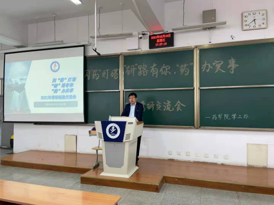 药学院党委高度重视学生考研工作,本次活动受到了学院领导的大力支持和精心指导。党委副书记陈建平出席本次活动并作出重要讲话。他深度分析了当下的考研形势,就学生考研院校、专业的选择,学习计划的制定,良好学习习惯的养成作出详细指导。并鼓励同学们唯有努力拼搏,坚持不懈,才能不负韶华,不负青春,考上理想学府。