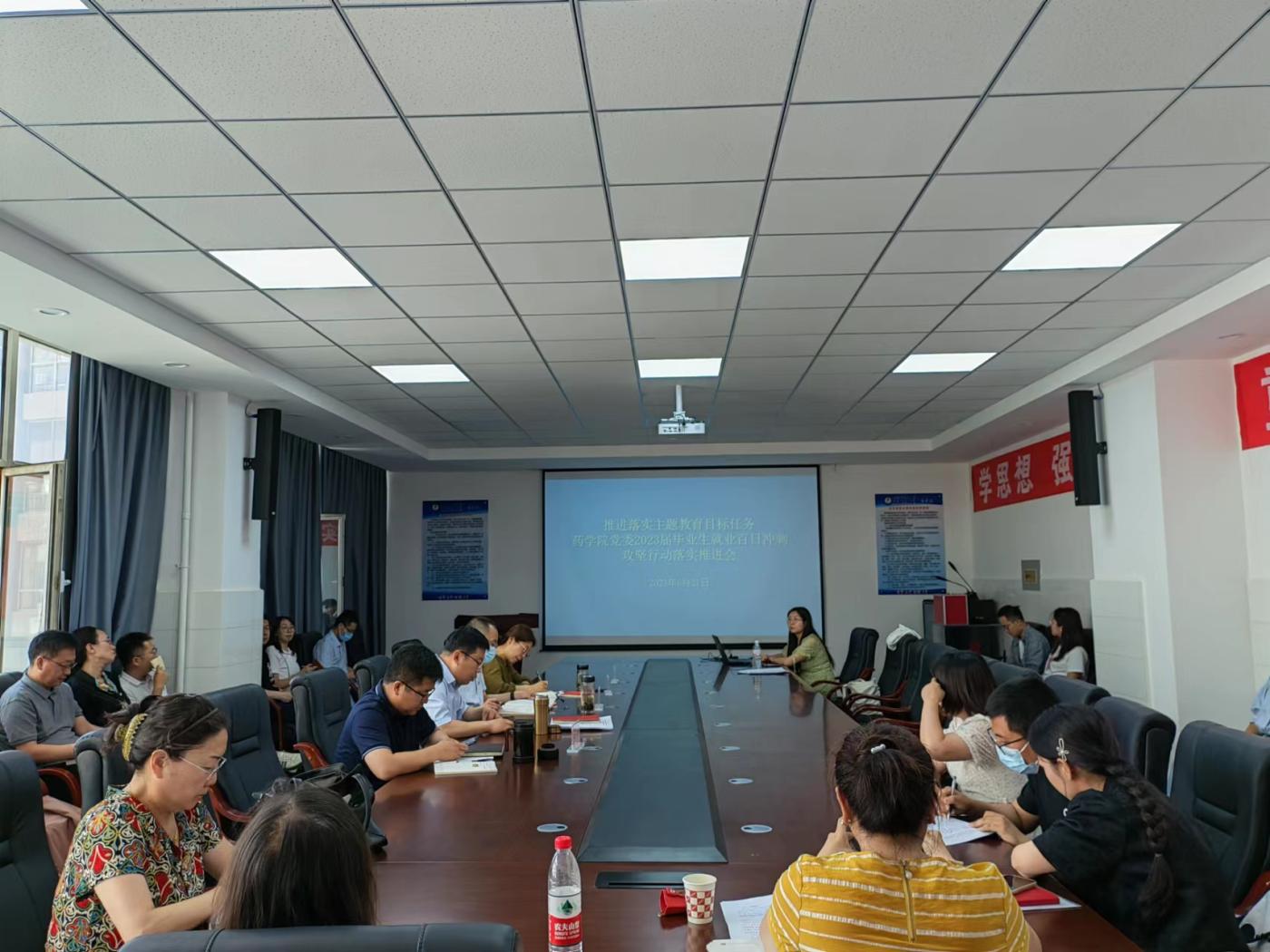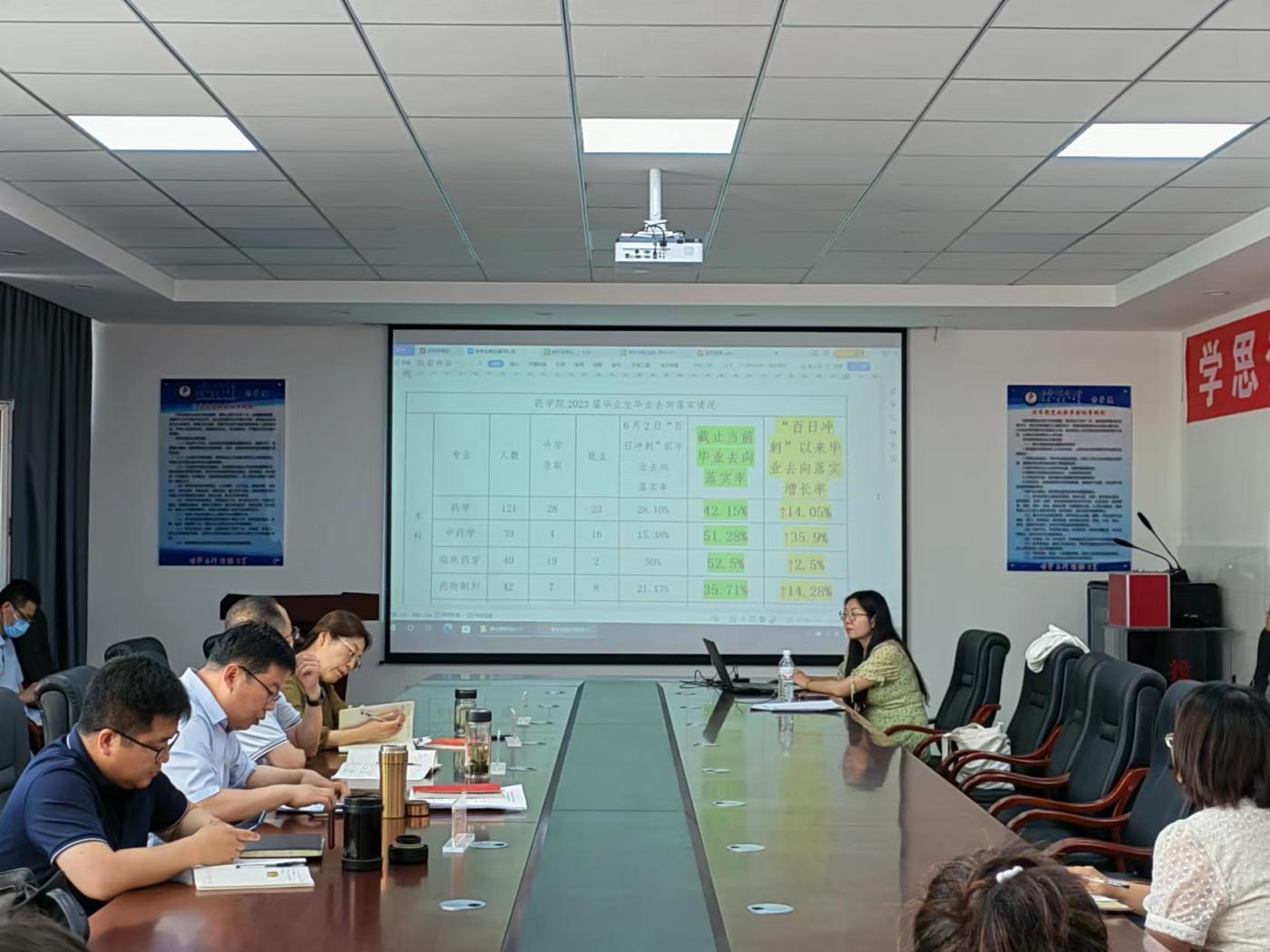 为进一步推进学习贯彻习近平新时代中国特色社会主义思想主题教育走深走实,持续推进就业工作进程,全力促进毕业生高质量就业,6月21日药学院党委召开2023届毕业生就业“百日冲刺”攻坚行动落实推进会。学院党政领导,各办公室、教研室、中心负责人,硕士研究生学位点负责人,全体辅导员参加了本次会议。