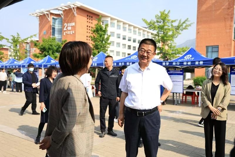 学校党委书记赵云山亲临招聘会现场,与用人单位代表深入交流,听取用人单位对学校人才培养、校企合作等方面的意见建议,并感谢各单位长期以来对我校就业工作的支持。赵云山指出,第一、就业教育应当从新生入学抓起,着力构建贯穿学生培养全过程的就业指导体系。第二、充分发挥优秀毕业生的示范引领作用,通过邀请优秀毕业生返校分享经验,引导学生树立“在干中学”的成长理念。第三、持续把感恩教育融入学生成长全过程,不断激发学生回馈母校、服务社会的责任感。