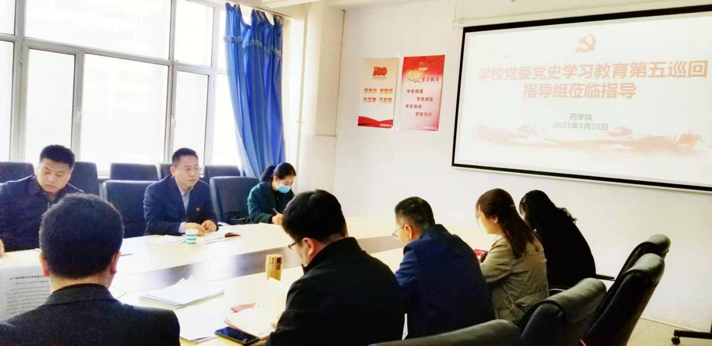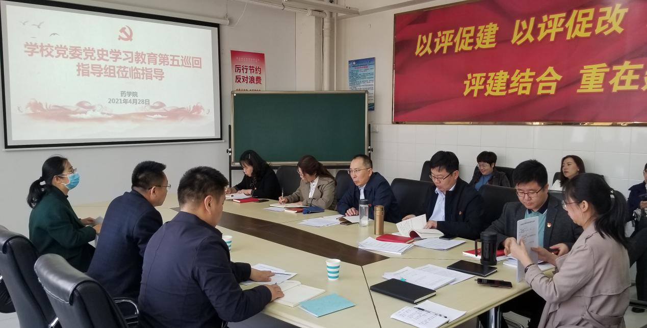 4月28日上午,学校纪委副书记(监察专员办公室主任)、学校党委党史学习教育第五巡回指导组组长刘玉龙同志,人文学院党总支副书记、副院长、学校党委党史学习教育第五巡回指导组副组长石海英同志,学生工作部公寓管理科主任、学校党委党史学习教育第五巡回指导组成员包文德同志莅临药学院调研指导工作。药学院党政领导、各党支部书记参加调研,会议由药学院党委书记张东宇同志主持。