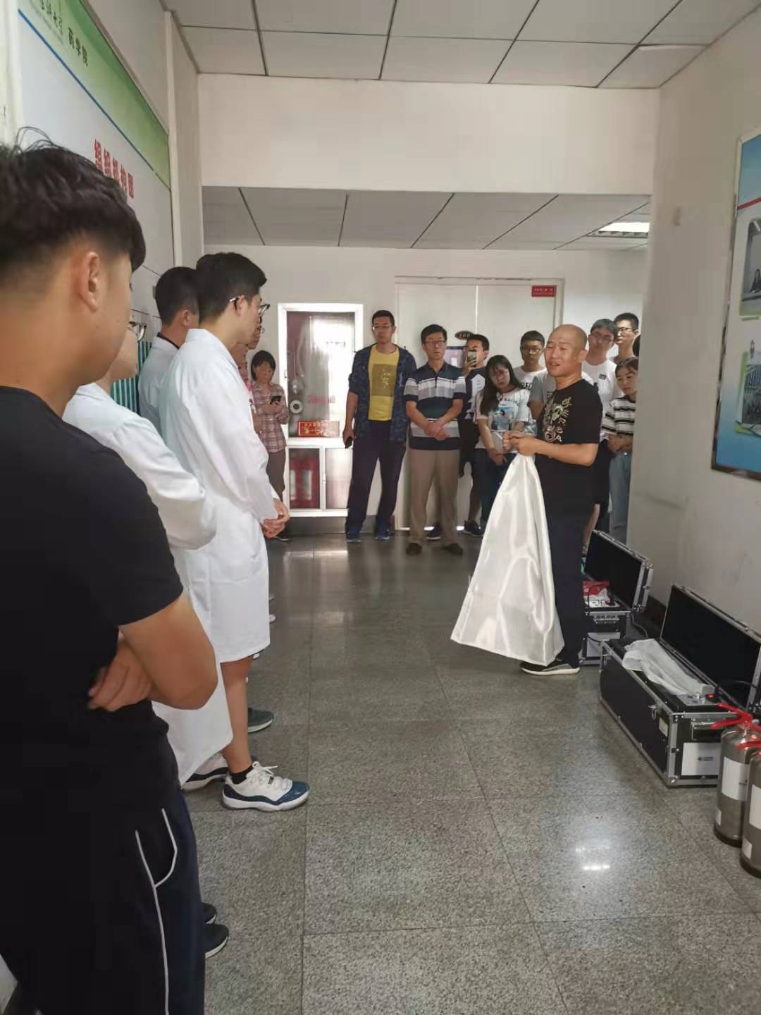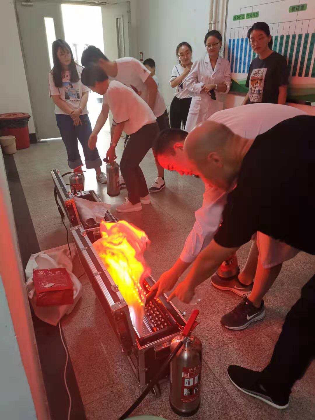 为了使广大师生熟练使用身边的消防器材,提高火场逃生自救的能力,2019年7月10日上午,我院邀请学校保卫处消防科石磊、许杰、赵嘉琪老师对我院师生开展消防设施、设备及器材实操训练。