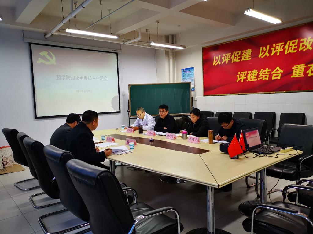 按照学校党委要求,药学院党总支于2019年1月25日召开民主生活会。学校党委委员、教务处处长李存保同志和督导组成员纪检监察审计处监察科科长跟锁同志莅临指导,药学院党总支班子成员参加了会议,学院各党支部书记列席。