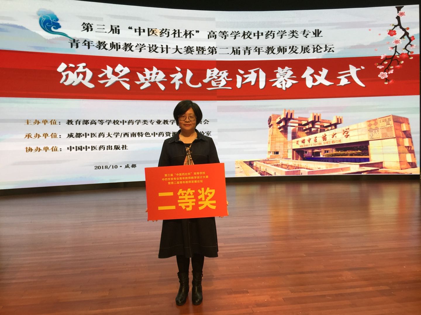 10月13-14日,由教育部高等学校中药学类专业教学指导委员会主办,成都中医药大学承办的第三届“中医药社杯”高等学校中药学类专业青年教师教学设计大赛暨第二届青年教师发展论坛在成都中医药大学温江校区举行。我校药学院3位参赛教师精心备战,李春燕获得综合成绩二等奖,张传领和孙丽君获得综合成绩优秀奖,为学校争得荣誉。薛培凤副院长为比赛特邀现场评审专家。