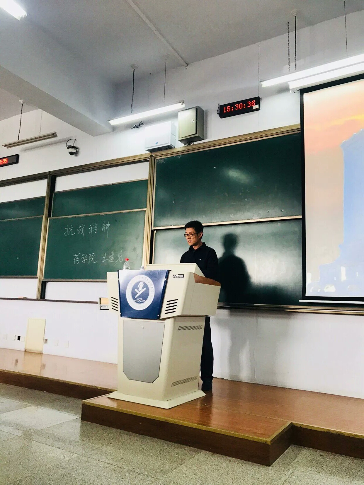 为加强大学生思想政治教育,响应我校“青年大学习”行动要求,引导大学生不忘初心、自立自强,2018年9月18日,药学院党总支书记王建允在教学南楼101教室为2018级新生开展了“抗战精神”主题讲座。