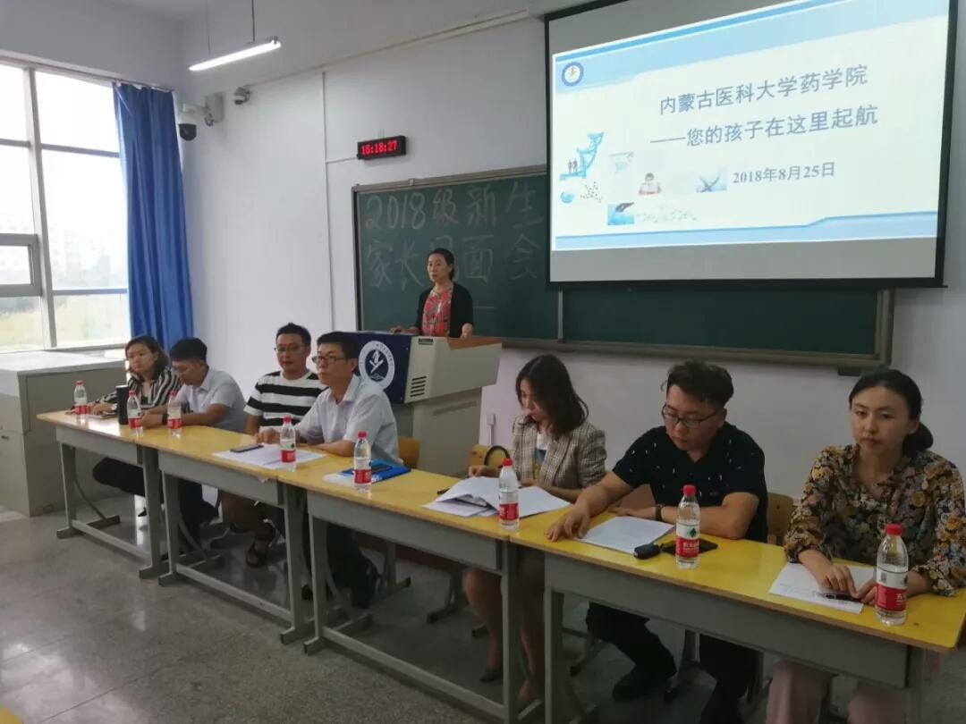 2018年8月25日下午三点,药学院于北楼105召开了“新生家长见面会”。药学院党总支书记王建允,副院长薛培凤,教科研办主任额尔敦、全体辅导员老师以及150多名新生家长参加了此次2018级“新生家长见面会”。会议由学工办副主任于敬茹老师主持。