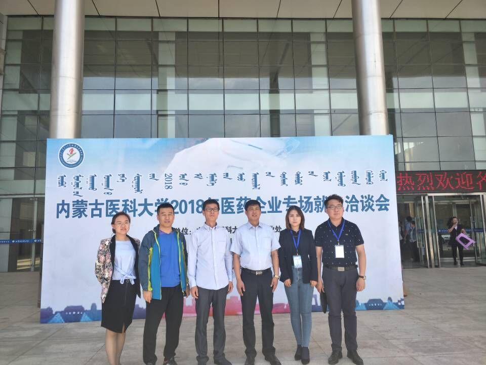 2018年5月25日,由内蒙古医科大学招生就业处、药学院主办的内蒙古医科大学2018年医药企业专场就业洽谈会在金山校区交流中心举办。学校招生就业处处长苗茂、副处长徐松美、药学院党总支书记王建允亲临会场指导工作。