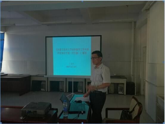 2017年6月19日下午6点,药学院在实验楼F座四楼会议室开展了“本科教学工作审核评估知识手册(学生版)”解说讲座,药学院党总支书记王建允老师为药学院全体学生干部解读了知识手册。