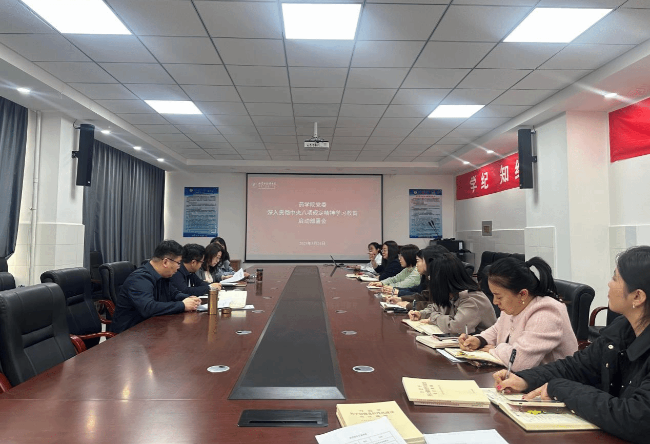 3月24日,药学院党委召开深入贯彻中央八项规定精神学习教育启动部署会。学院党委委员、各党支部书记参加会议。会议由学院党委副书记兼副院长陈建平主持。