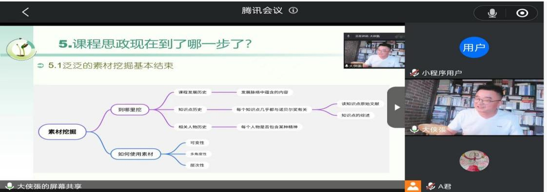 张博士根据自己在做课程思政过程中的经验以及老师们遇到的共性问题进行了深度解析,同时预测了课程思政未来的走向,以自己原创案例,具体分析了课程思政设计的关键环节,为正在从事课程思政建设的老师提供了建设性意见。在交流环节,张博士解答了老师们提出的问题,参会教师表示获益匪浅。