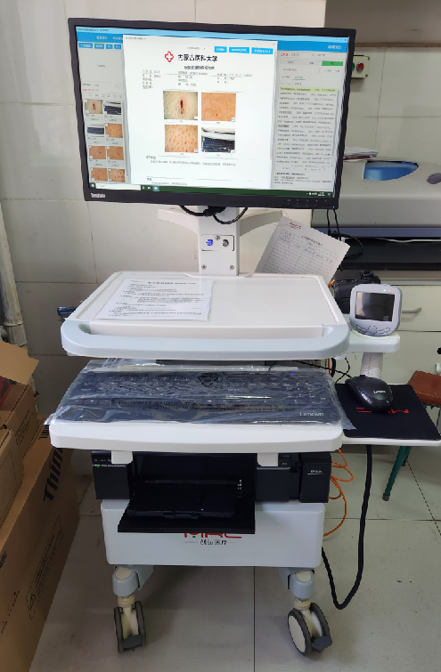 此次培训邀请了设备厂家的工程师,主要包括三部分内容:设备操作、软件操作和日常维护。设备操作主要涉及电子皮肤镜操作,镜头及医用隔离片的使用和宏观相机的操作。软件操作包括用户管理及授权,检查登记,图像采集,辅助分析,报告编辑及打印,报告查询及导出,信息管理。日常维护包括镜头、整机保养以及常见问题处理。