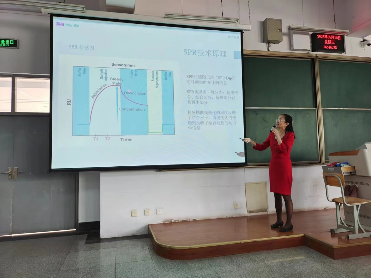 2023年5月10日下午,药学院在金山校区北楼102教室举办了仪器培训讲座。活动邀请到北京英柏生物科技有限公司的鲁静老师做专题讲座,主题为分子互作仪表面等离子共振原理及应用。